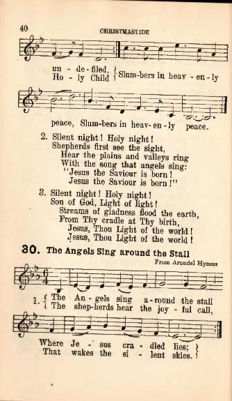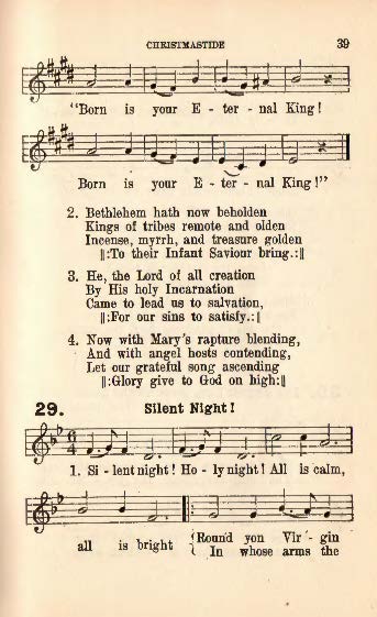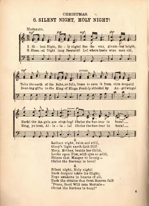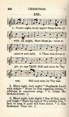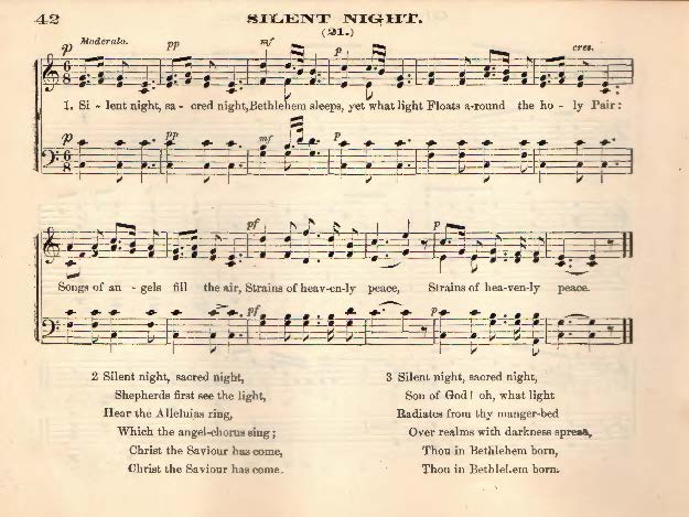 - Hymnals with – Silent Night, plus variations on the text (Various hymnals)