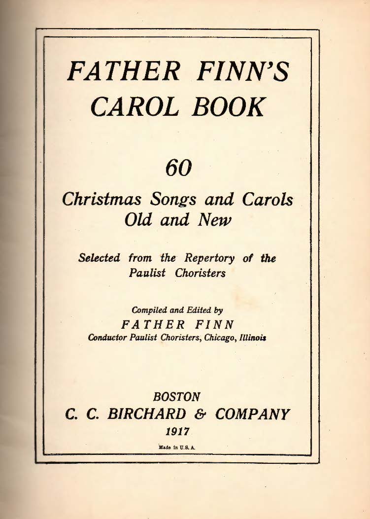 - Father Finn’s Carol Book, 1917 – Father Finn conductor of Paulist Choristers