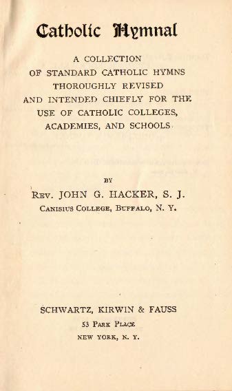- Catholic Hymnal, 1920 – Father John G. Hacker, S.J., Canisius College, N.Y.