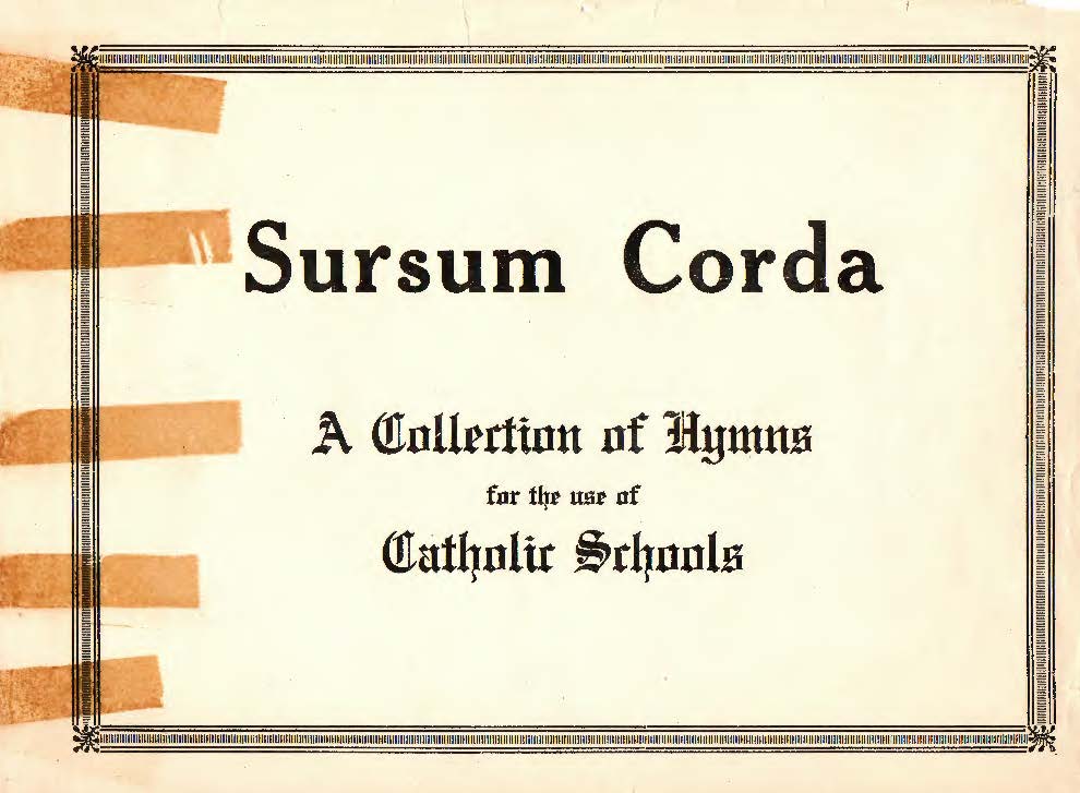 The Sursum Corda was published in 1925 and was compiled by the Sisters of St. Francis of Stella Niagara, New York for the use of Catholic Schools. The organ accompaniment was provided by Father Florian Zettel, O.F.M., (1879-1947) from the Church of the Ascension Portland, Oregon. There is only one verse.