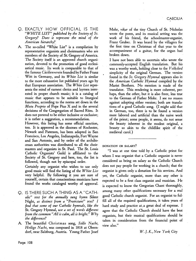 I transcribed the question from the March-April edition of the Caecilia Magazine and present it here in case it is not legible to some.