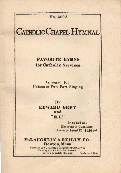 - The Catholic Chapel Hymnal, 1944 thru 1968 – McLaughlin & Reilly Co., Boston, MA.