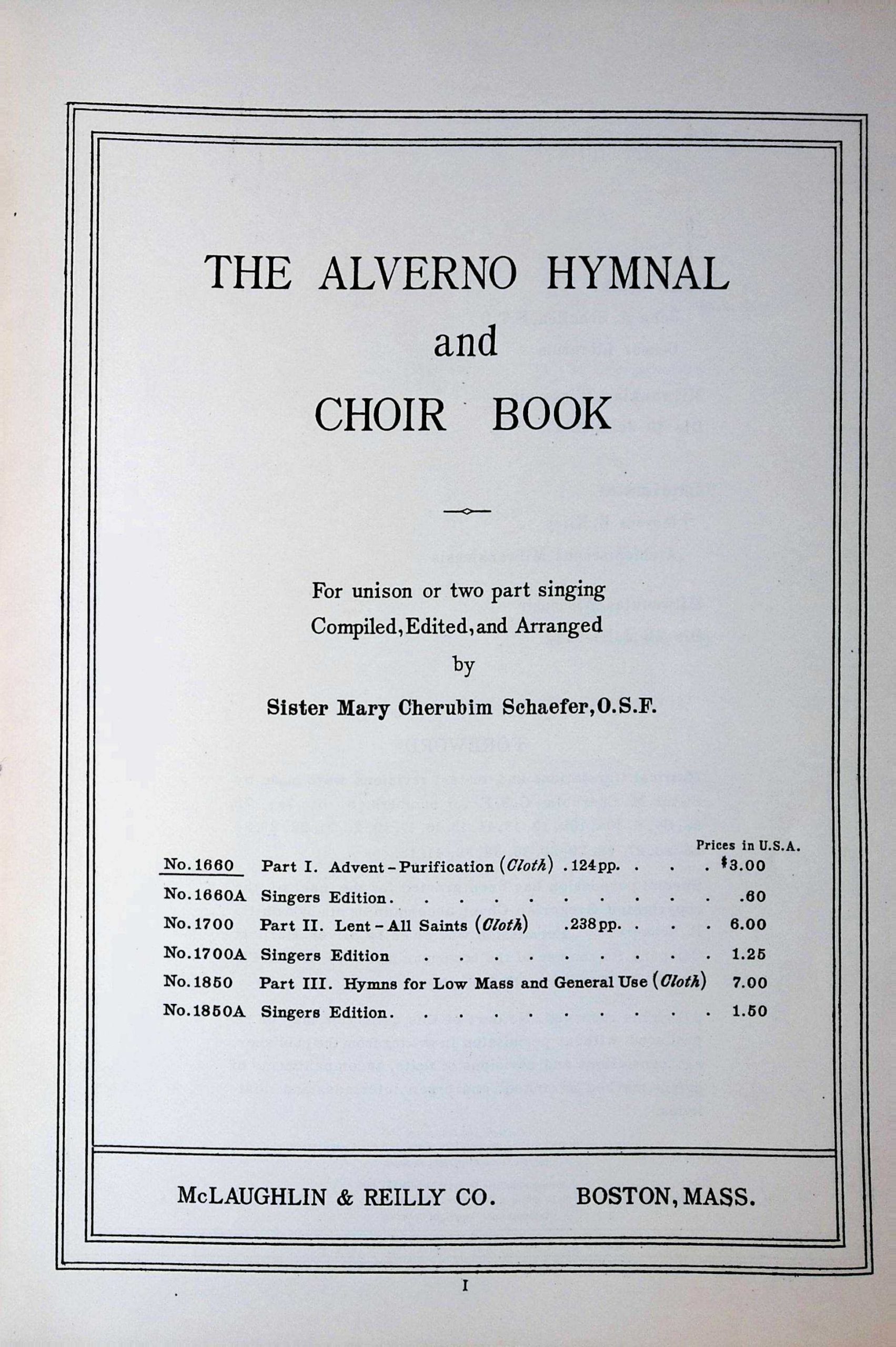 - Alverno Hymnal Book 1, 1954 – McLaughlin & Reilly Co., Boston, MA.